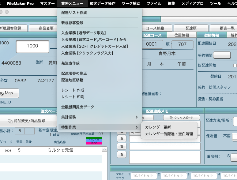 ワーク>業務メニュー>特別作業>>カレンダー倍配達・空白処理