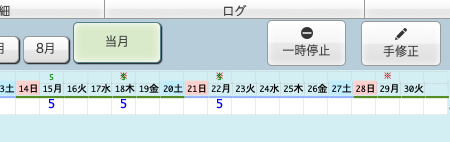 移動処理を行った日付にそれぞれマークが入り移動が行われました。