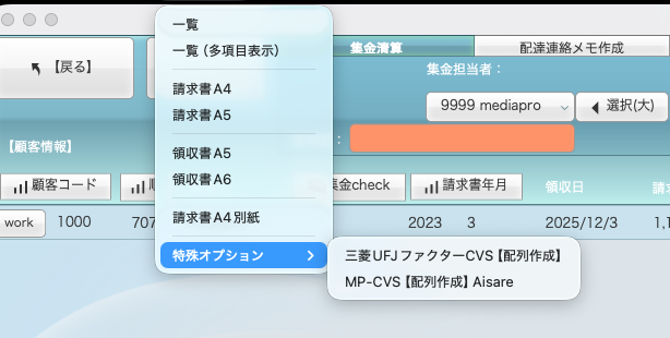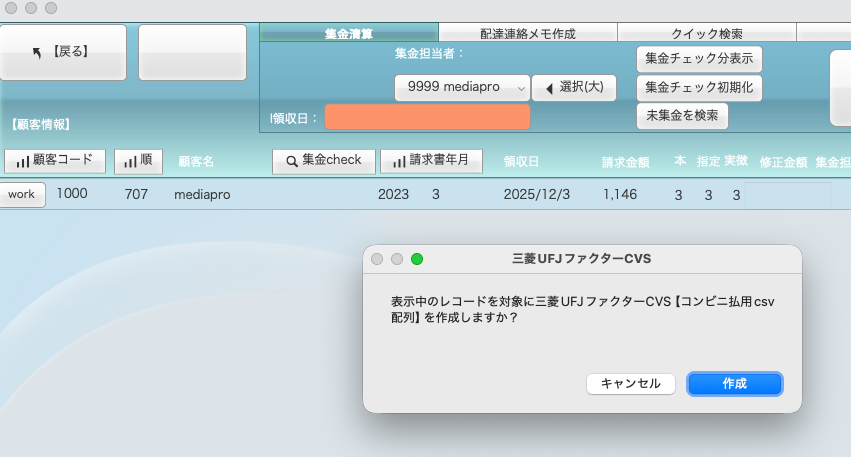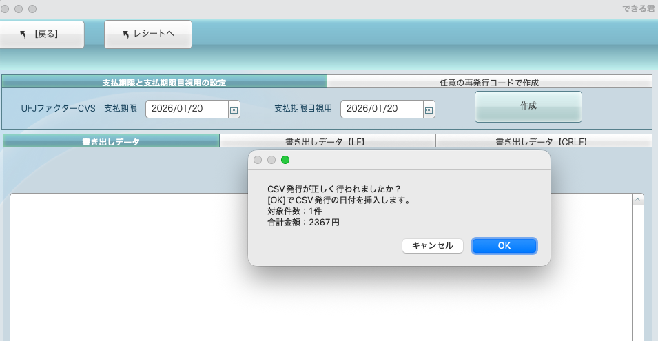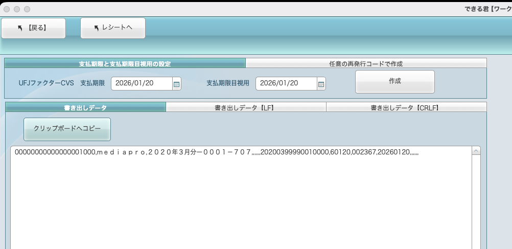 ・レシートの特殊オプションから三菱UFJファクターCSV(コンビニフォーマット)を作成