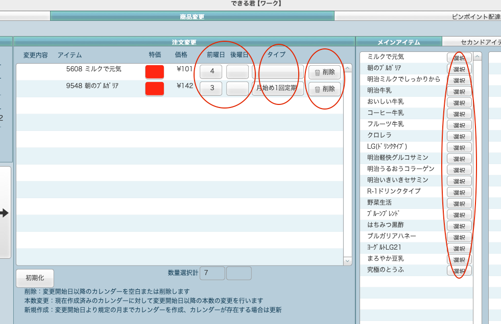 ・本数変更:現在作成済みのカレンダーに対して変更開始日以降の本数の変更を行います