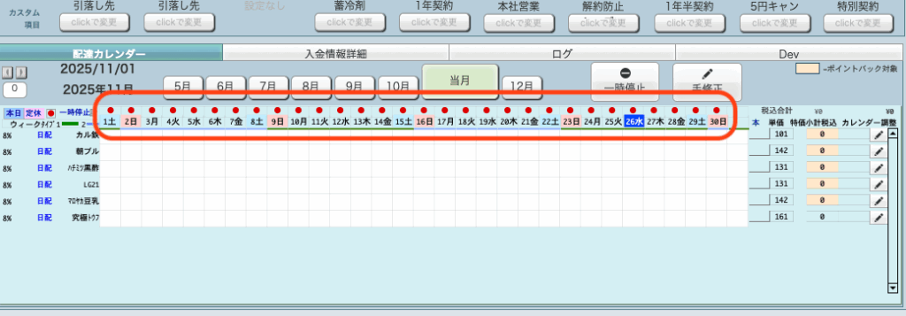 ・カレンダー更新・商品変更 等の変更が一時停止が優先されて更新や変更がカレンダーに反映されません。