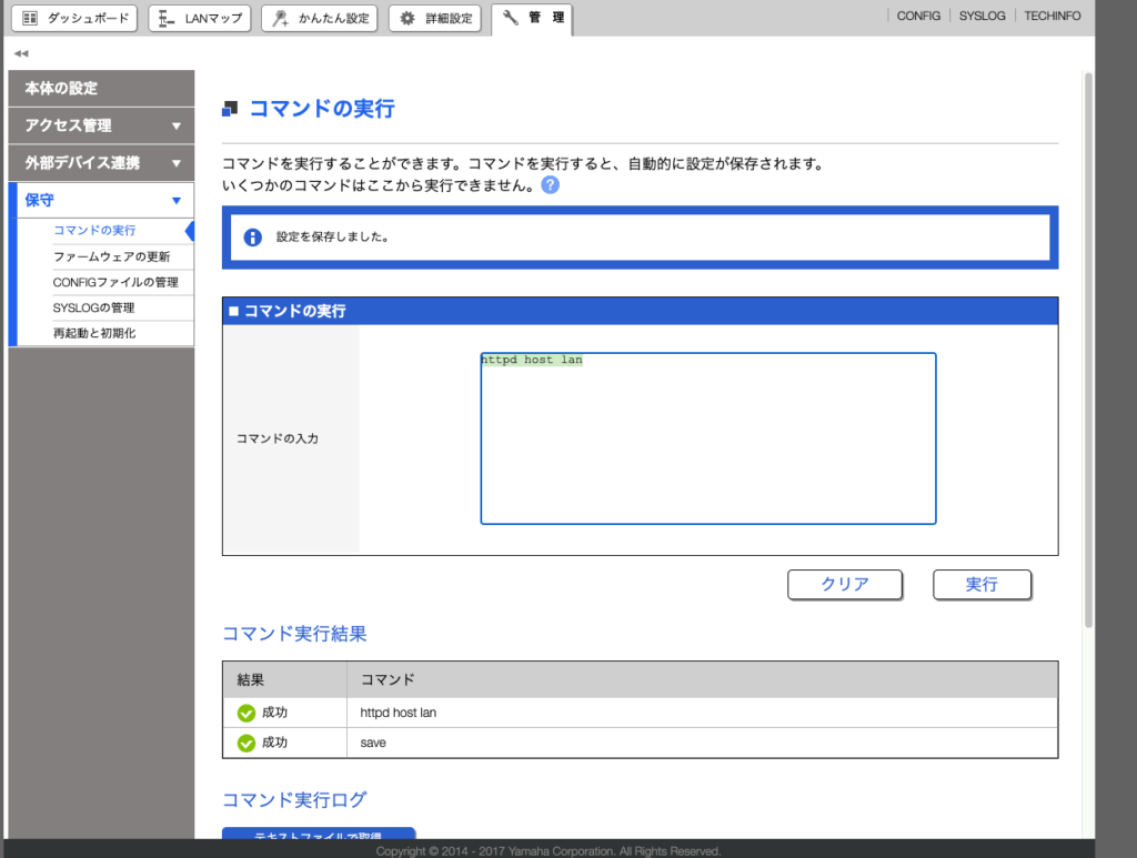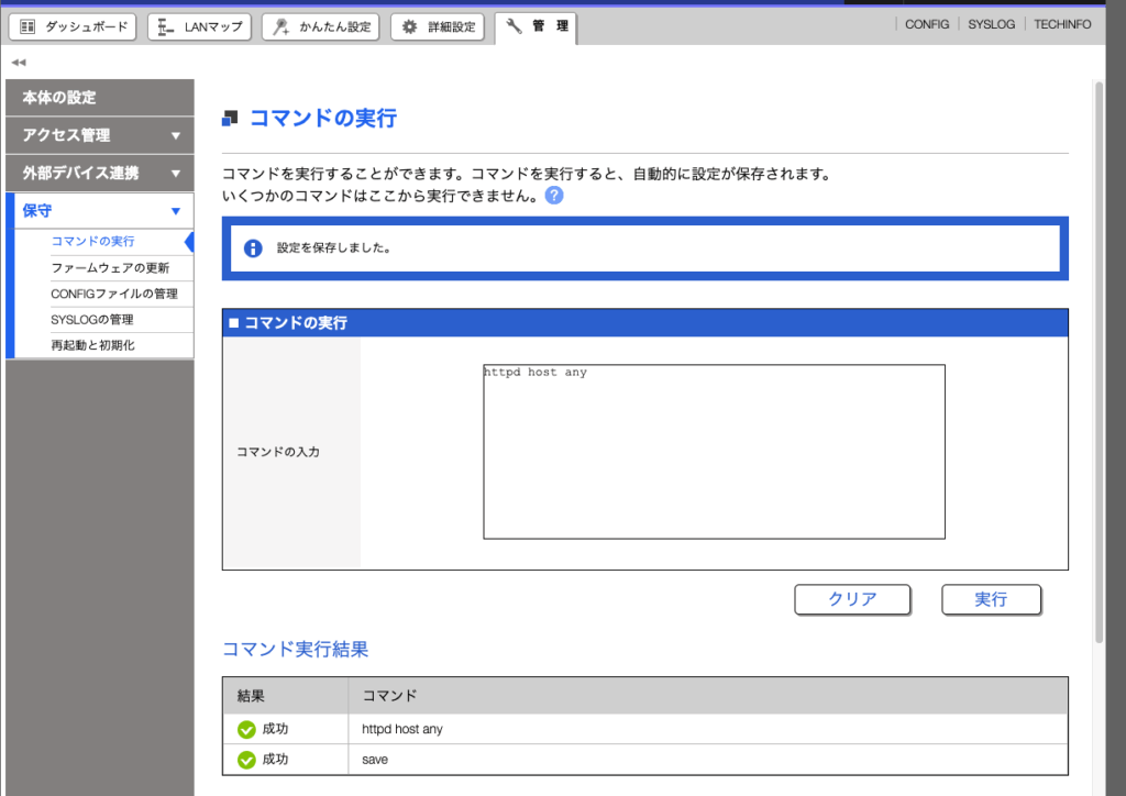 管理>コマンドの実行