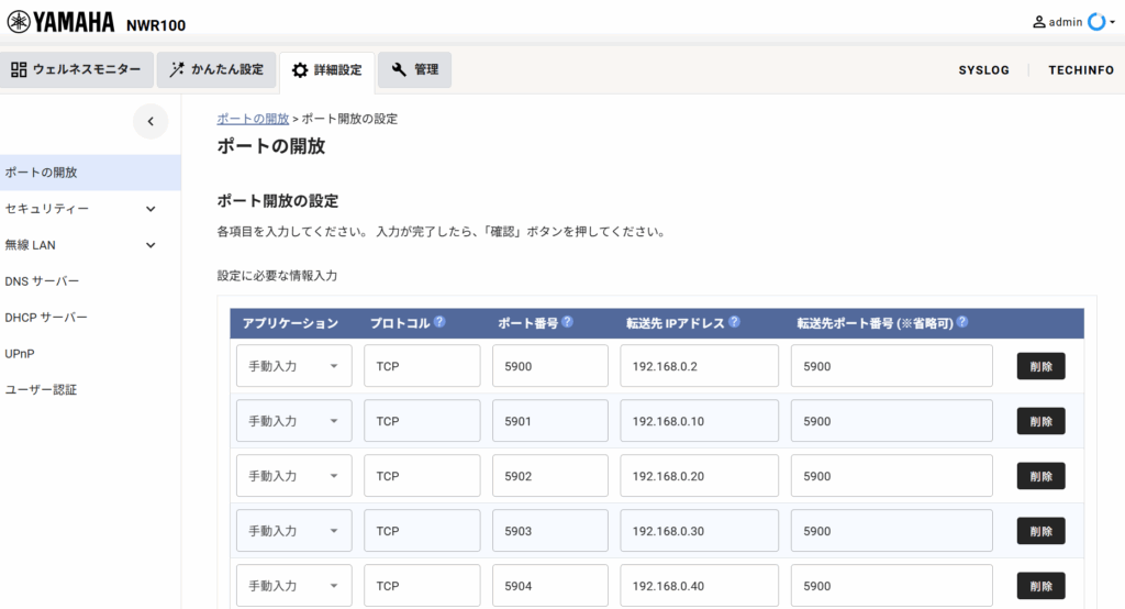 NWR100 ポートの解放 #