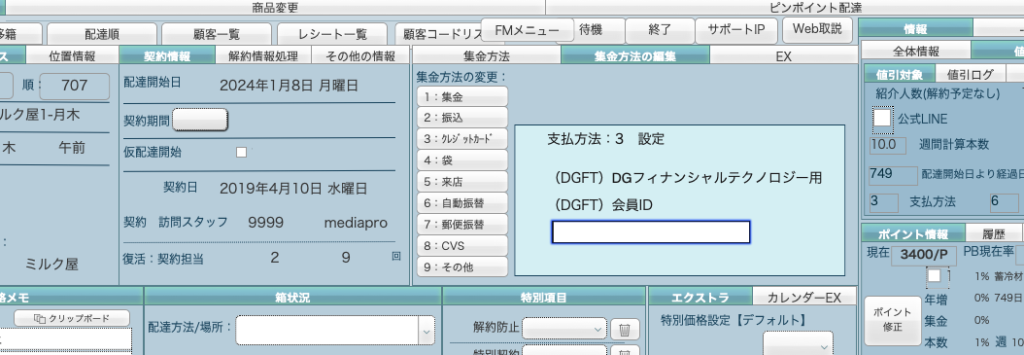 集金方法3が選択され + DGFT 会員ID に未入力 = クレジット未登録 の場合