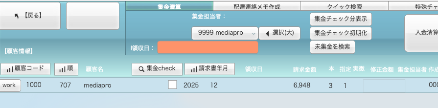 請求書集金のコメントは手集金を採用としました。